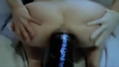 Elle défonce son trou de balle à l'aide d'un énorme sextoy noir