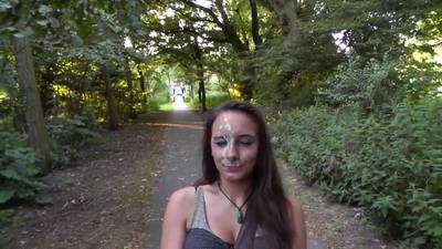 Cette meuf est du genre à kiffer les exhibitions extrêmes ! Dans un jardin public, elle branle son mec jusqu'à ce qu'il éjacule une sacrée dose de sperme sur sa face. Elle ne va rien nettoyer du tout... préférant prendre quelques selfies de sa frimousse qui dégouline de semence.