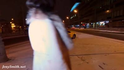 Elle n'est pas très rassurée et il y a de quoi ! Cette sublime russe BCBG part s'exhiber en pleine ville, à la nuit tombée. Sous son manteau de fourrure, elle est nue. Seins et chatte à l'air, elle ne porte qu'un porte-jarretelle qui met parfaitement ses jambes effilée en valeur.