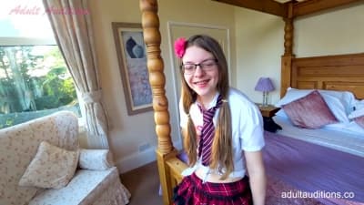 La jeune étudiante anglaise veut essayer le porno, pour voir si ça lui plait. Le mec lui prend la chatte poilue, mais la meuf se manifeste à peine.