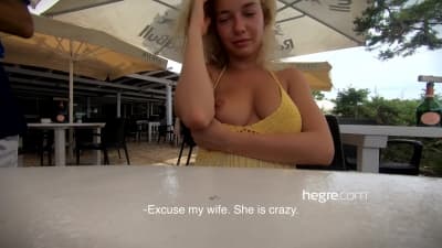 La jeune fille se retrouve nue sur une plage naturiste. Elle a un plug anal mis et nous le montre. La jolie blonde n'enlève jamais son sextoy favoris.
