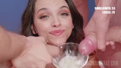 Cette jolie petite salope aime tellement le goût du sperme, qu'elle se propose à participer dans un bukkake extrême. Son visage et sa bouche glissent.