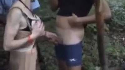Un mari prête sa vieille femme française à tous les hommes qui souhaitent la baiser dans une forêt, incroyable...