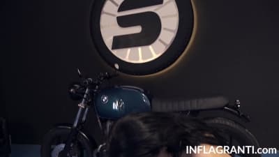La milf allemande est là pour les photos du calendrier BMW. À un moment, les photos deviennent coquines et à poil, elle se fait prendre à coté de la moto.