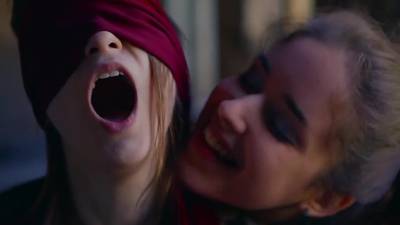 C'est dans un entrepôt abandonné ou une usine désaffectée que cette jeune femme aux yeux bandés s'adonne à la masturbation soliataire. Debout, cette lesbienne fait glisser son string et promène ses doigts entre ses lèvres vaginales. Elle a du tempérament et lèche même ses gros seins. Ayant choisi le rôle de soumise, elle est bientôt rejointe par une domina en robe en latex noir qu'elle ne voit pas. Elle devient alors un objet entre les griffes de cette fétichiste qui s'occupe de la faire jouir. Elles échangent un baiser anonyme et c'est assise cuisses ouvertes que cette coquine mouille.