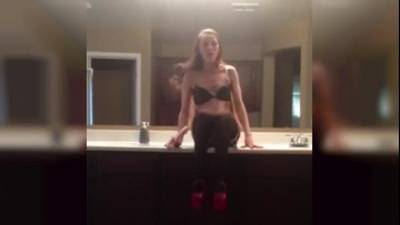 Cette femme longiligne aux courbes sensuelles sait s'y prendre pour allumer les mecs ! Ici c'est en jupe longue qu'elle se dirige vers le lavabo pour entamer un strip sexe. Elle baisse sa jupe et se retrouve en dessous sexy pour s'exhiber et passer à l'acte. Effectivement cette bimbo en porte-jarretelles et lingerie assortie entame un plan masturbation exceptionnel en solo. Culotte baissée, elle s'empale sur son gode ventouse pour dilater sa chatte. Enflammée et chaude comme tout, cette libertine est carrément assise au bord du lavabo pour se faire du bien juste avec son jouet sexuel.