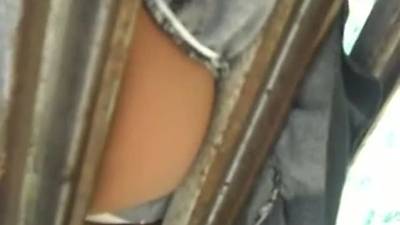 Un voyeur filme ses belles fesses par dessous alors qu'elle attend l'autobus.